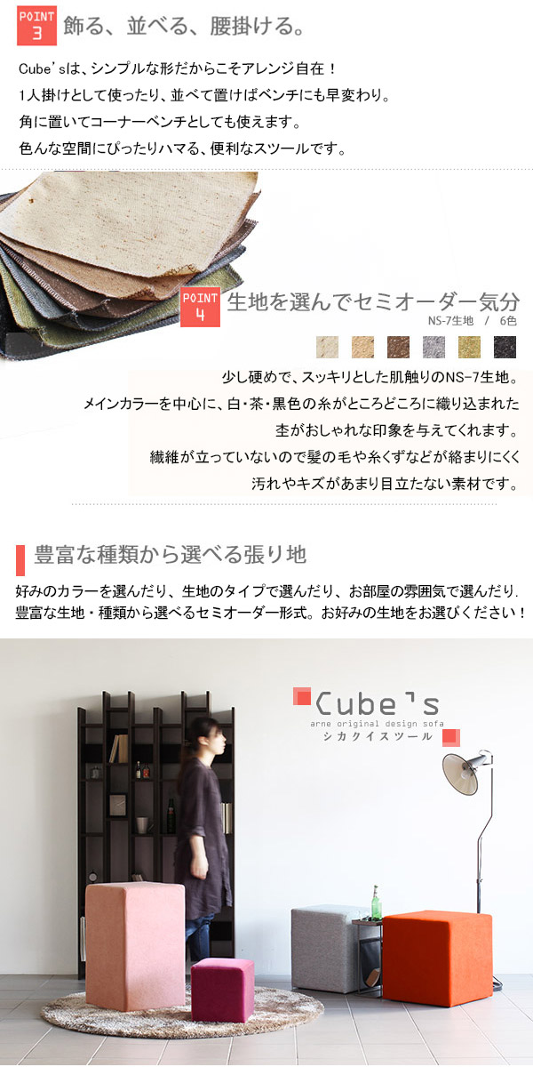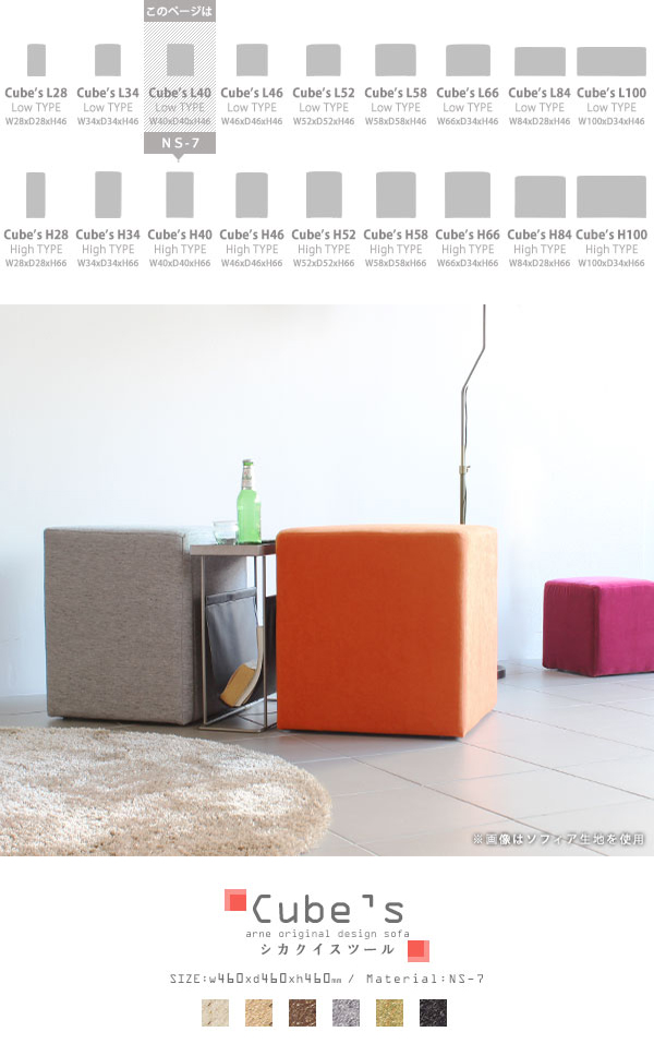 スツール キューブ 四角 スクエア 椅子 イス ベンチ ソファ ソファー 腰掛け 背もたれなし Cube’s L46 NS-7 □