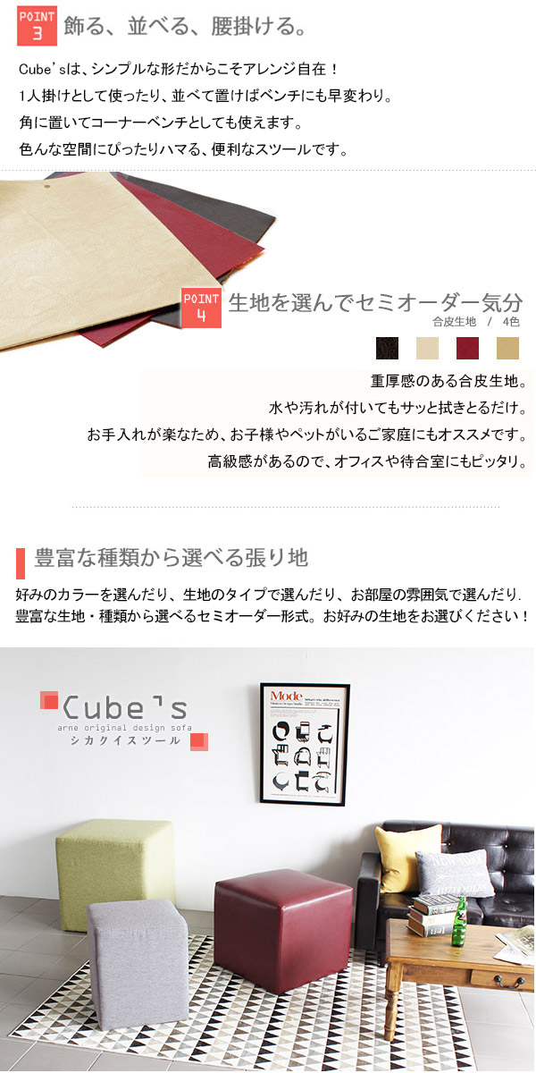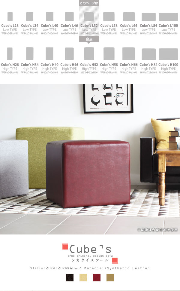 スツール 椅子 チェアー ロースツール 北欧 スクエア 椅子 イス ベンチ ソファ 背もたれなし Cube’s L52 合成皮革 □
