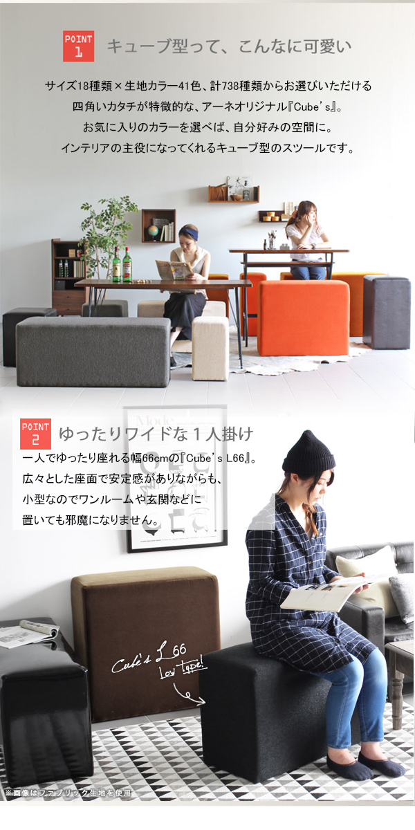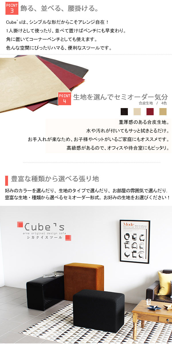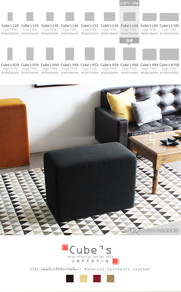 スツール キューブ 四角 スクエア 椅子 イス ベンチ ソファ ソファー 腰掛け 背もたれなし Cube’s L66 合成皮革 □