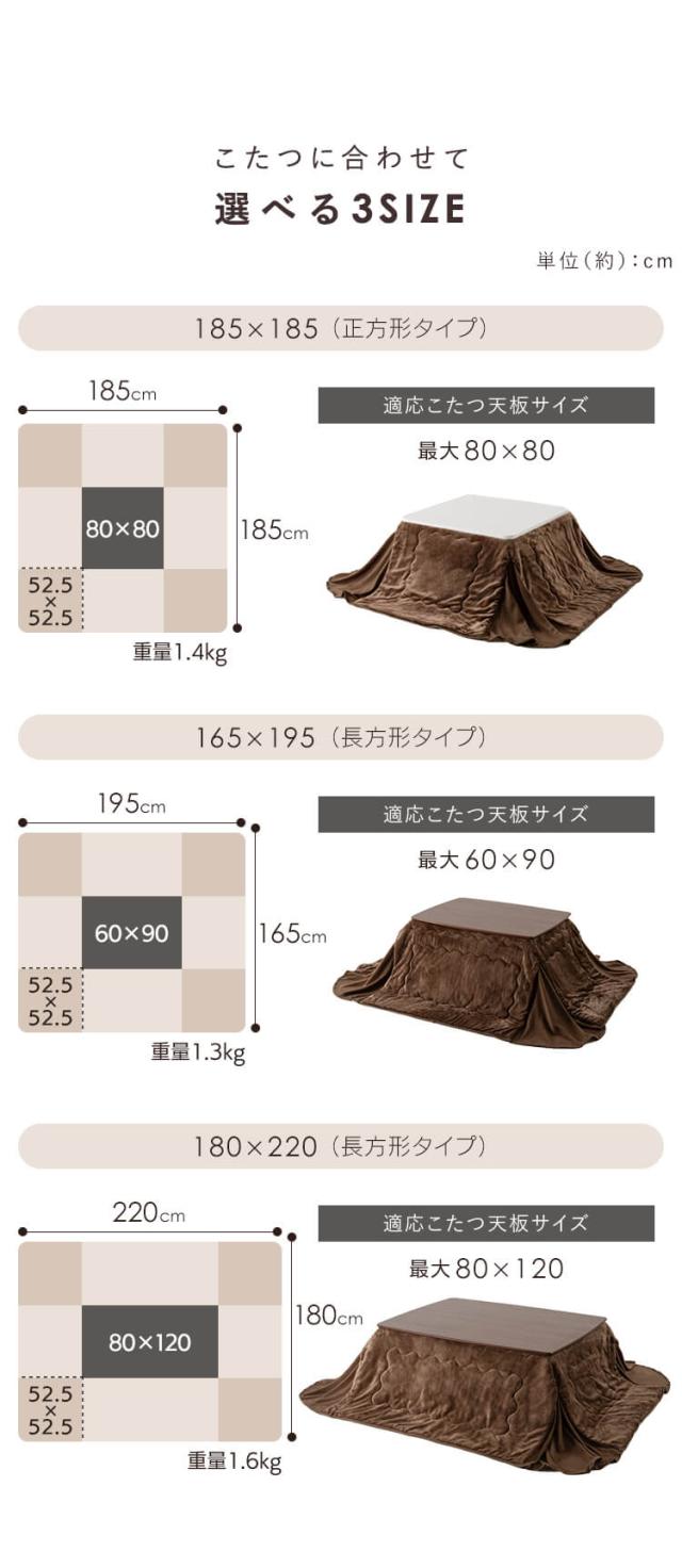 こたつ布団 掛け布団 こたつ用掛け布団 省スペース 正方形(約185×約185) 長方形(約165×195) 長方形(約220×約180)こ こたつ コタツ 掛け布団 布団 ふとん こたつふとん あったか マイクロファイバー かわいい シンプル おしゃれ