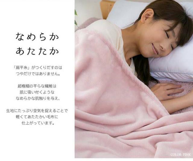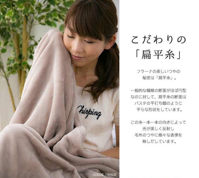 超極細繊維である『フランネル扁平糸』繊維を使用している為、軽くてふわふわでやわらかな肌さわりの毛布が出来ました。