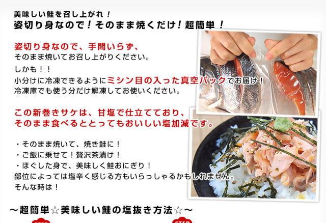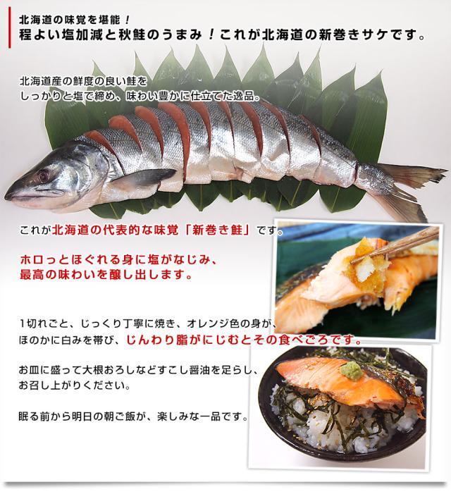 北海道産の鮮度の良い鮭を しっかりと塩で締め、味わい豊かに仕立てた逸品です。北海道の味覚を堪能してください、程よい塩加減と秋鮭のうまみ、これが北海道の新巻きサケです。
