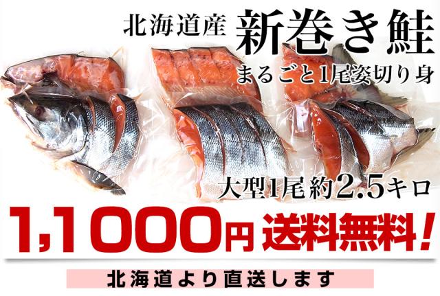 北海道より直送 新巻鮭 姿切り身 大型の鮭 まるごと1尾分 約2.5キロ 送料無料 北海道サケ シャケ 秋鮭 新巻き鮭 【発送時期:カート内に記載しております】