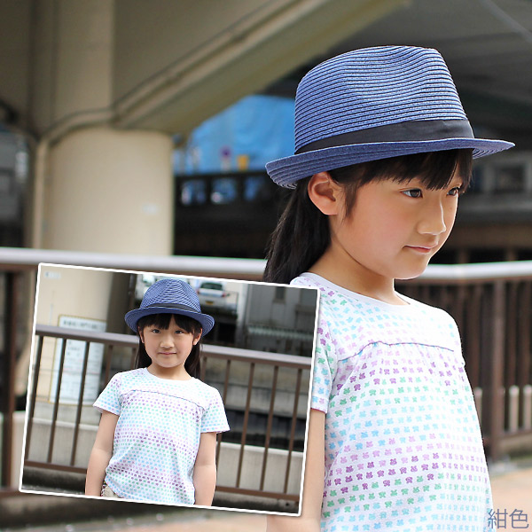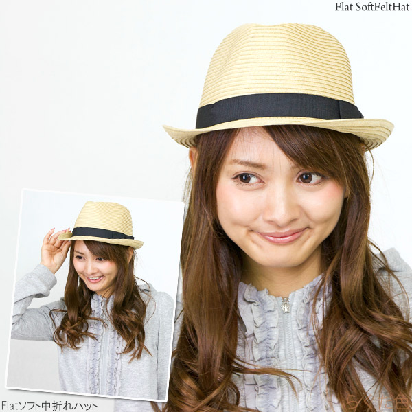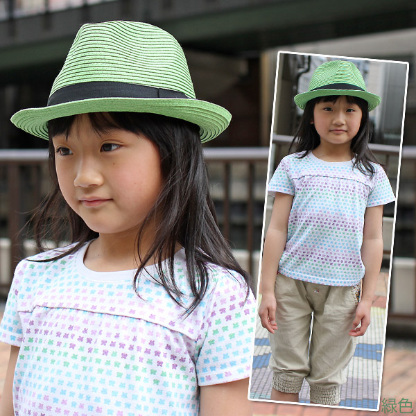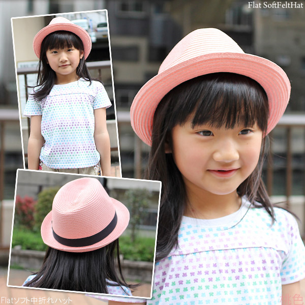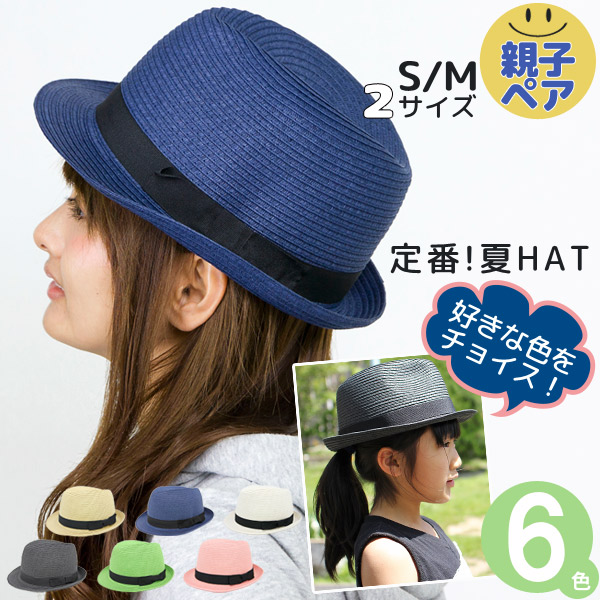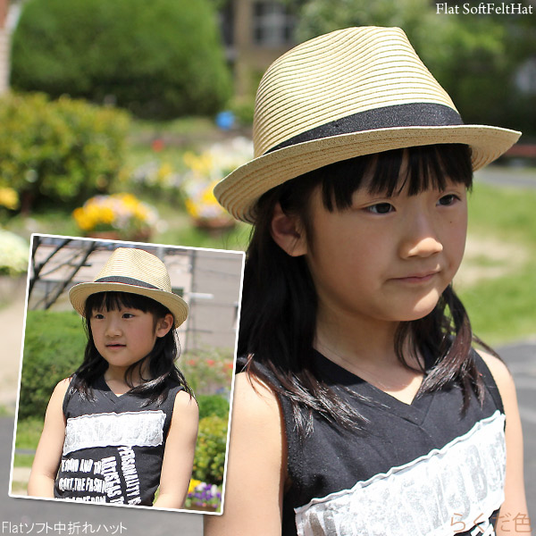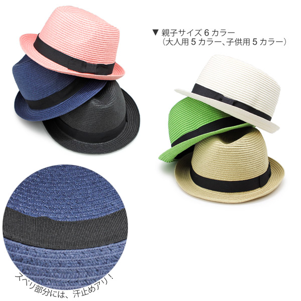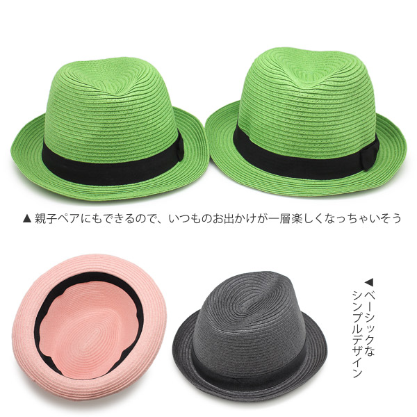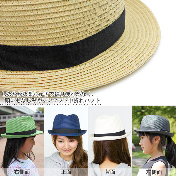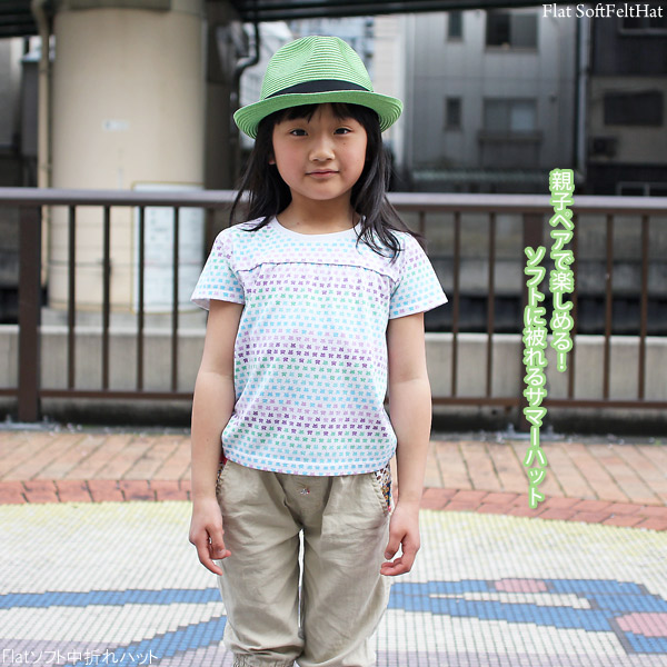 ハット 親子ペア 帽子 キッズ 子供用 レディース メンズ 麦わら ペーパー 春夏 ストローハット 男の子 女の子 / Flatソフト中折れハット