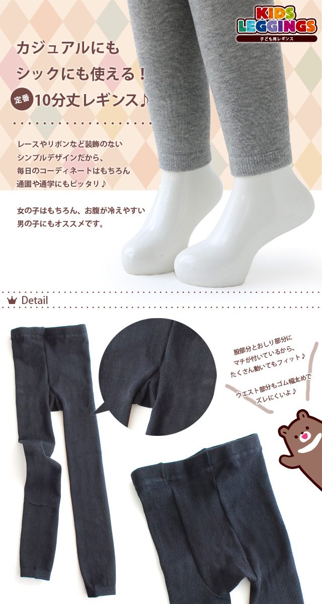 【送料無料】 子ども レギンス | 毎日のコーデに!重ね着にも使える 丸編み カラーレギンス 全4カラー 3サイズ | 男の子 女の子 通園 通学