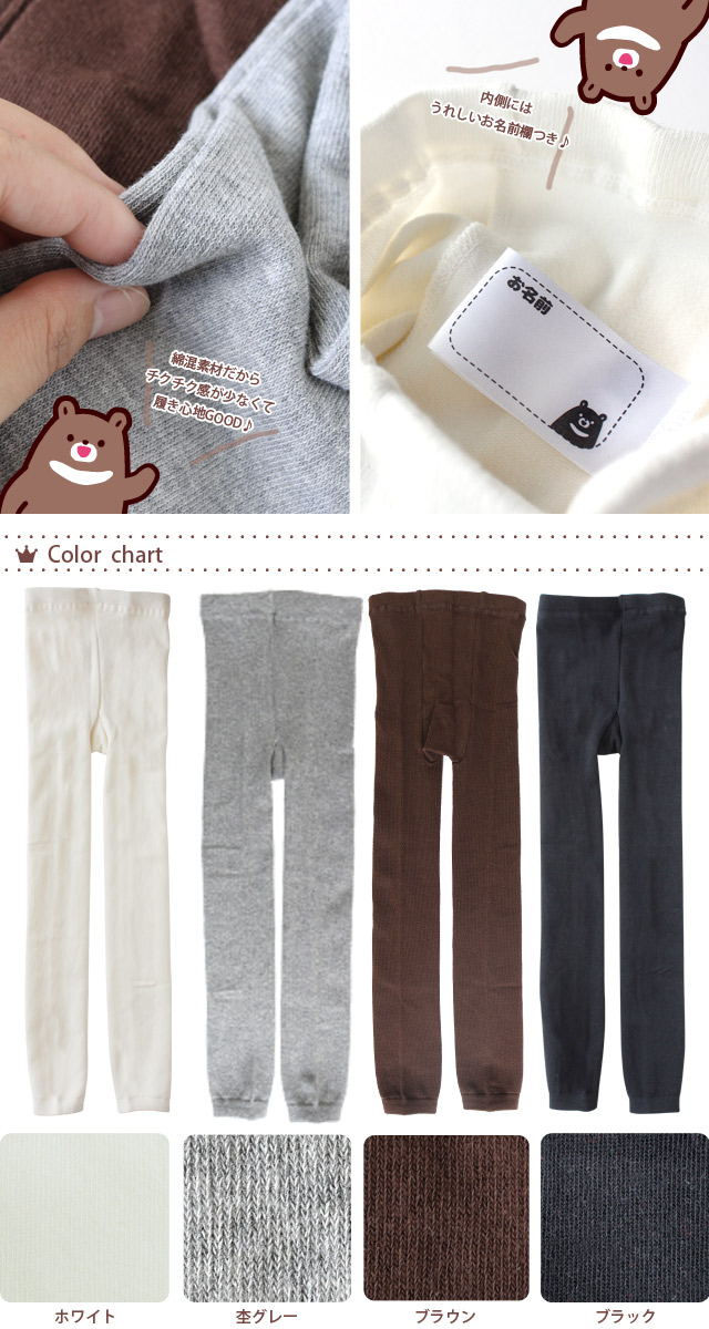 ●カジュアルにもシックにも使える!キッズレギンス。レースやリボンなど装飾のないシンプルデザインだから、毎日のコーディネートはもちろん通園や通学にもピッタリ!女の子はもちろん、お腹が冷えやすい男の子にもオススメです。 ●股部分とおしり部分にマチが付いているから、たくさん動いてもフィット。ウエスト部分もゴム幅太めでズレにくい♪ ●綿混素材だからチクチク感が少なく、履き心地GOOD!内側にはうれしいお名前欄つき&毎日履けちゃうプチプライスも見逃せません♪ |