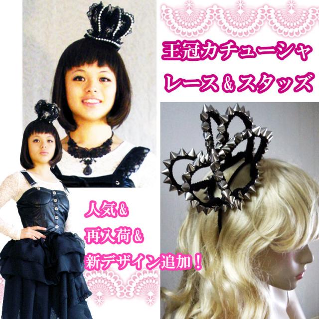 訳あり★王冠カチューシャレースとスタッズとジュエルゴスロリパンクヘッドドレスゴシックロリータ原宿系パーティイベントコスプレ