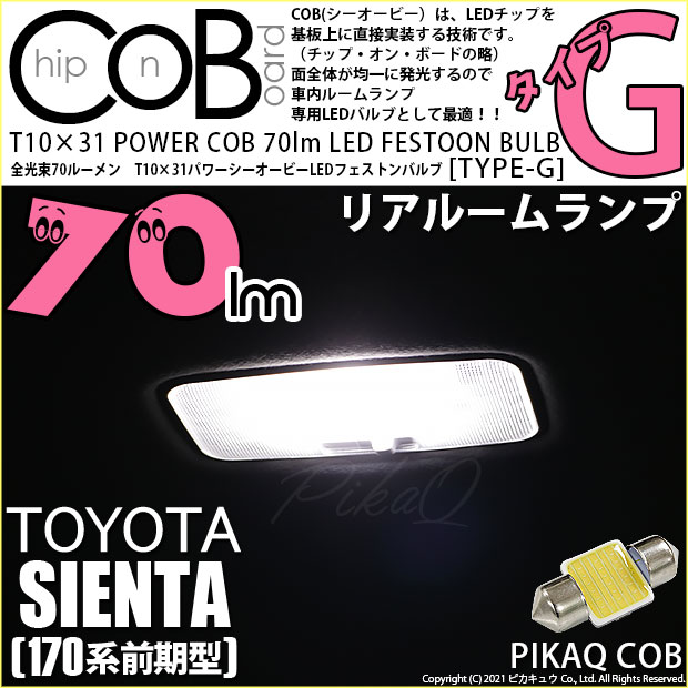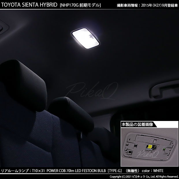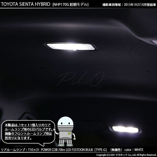 ピカキュウ,LEDバルブ専門店,POWER COB,T10×31,POWER COB 70lm LED FESTOON BULB,ハイブリッド車対応,定電流回路搭載,ホワイト,全光束70ルーメン,31mm枕型LED,ルームランプ,リアルーム,トヨタ,2代目シエンタ,シエンタ,TOYOTA,SIENTA HYBRID,NHP170,前期