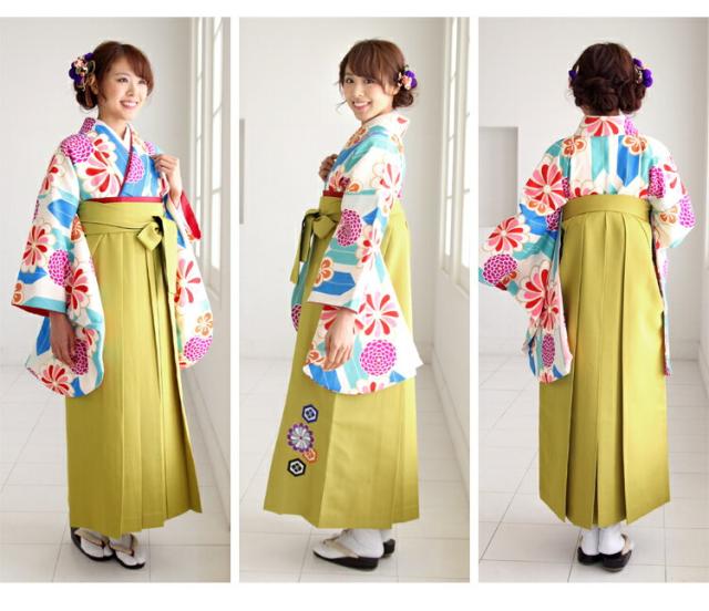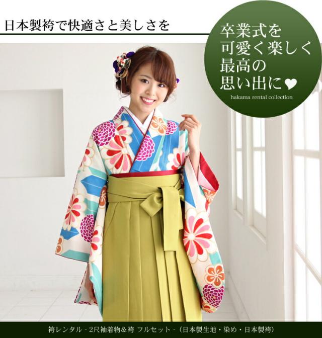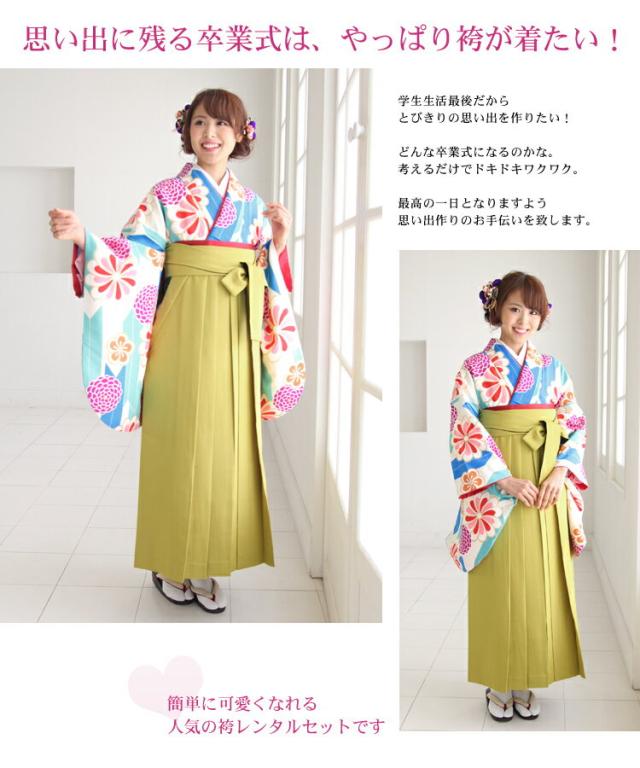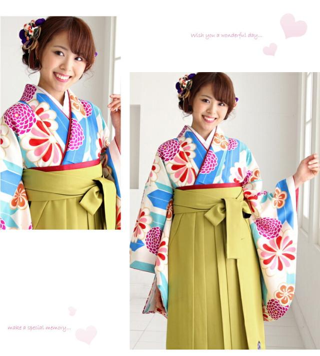 卒業式 袴 レンタル 女 袴セット 2尺袖着物&袴 フルセットレンタル 安い 「水色地に青矢絣 菊 ひねり梅」