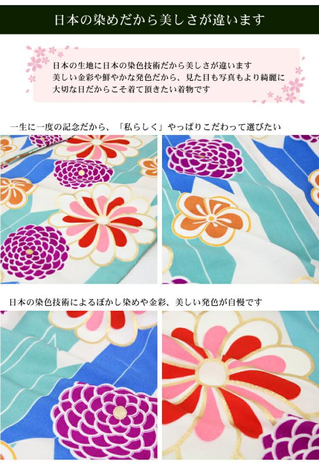 | ※モデル着用の巾着・半巾帯・重ね衿・草履の色、デザインはイメージです。 数ある中から呉服のプロがコーディネートしてお届け致します。 ※着物の柄の配置は写真とまったく同じではございません。 | |||