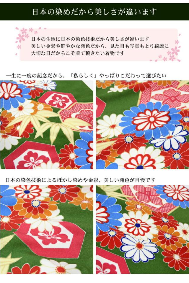 | ※モデル着用の巾着・半巾帯・重ね衿・草履の色、デザインはイメージです。 数ある中から呉服のプロがコーディネートしてお届け致します。 ※着物の柄の配置は写真とまったく同じではございません。 | |||