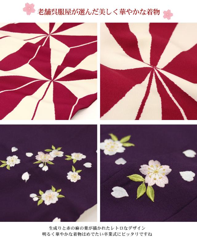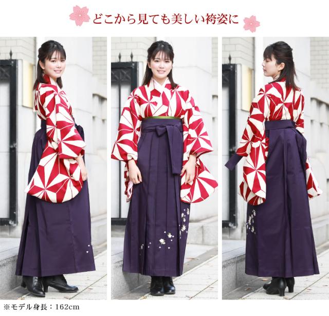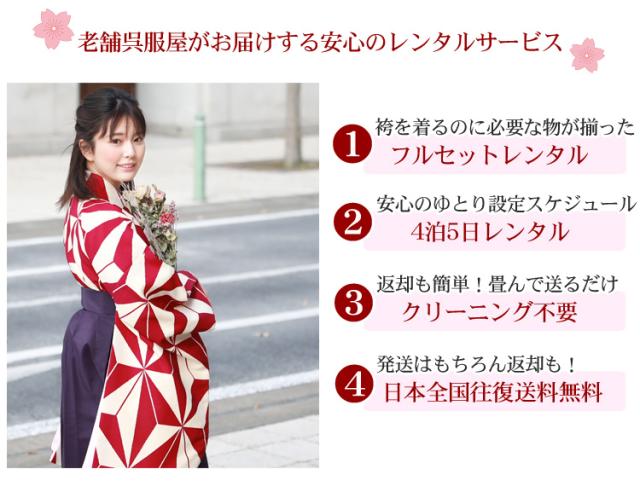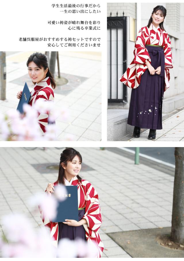 卒業式 袴 レンタル 女 袴セット 2尺袖着物&袴 フルセットレンタル 安い 「生成りと赤の麻の葉」