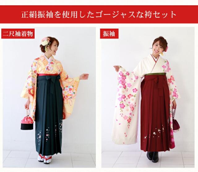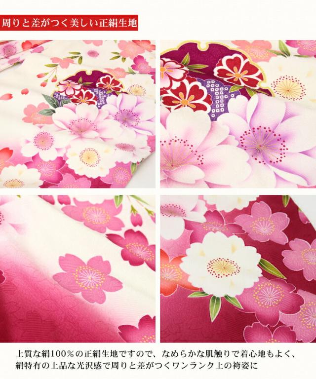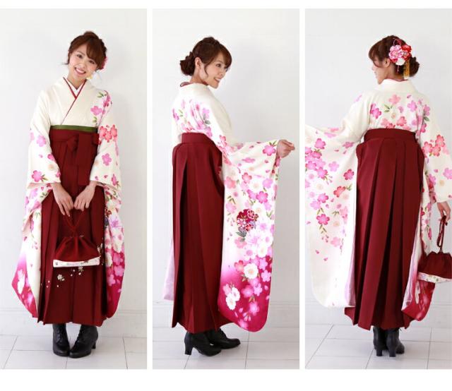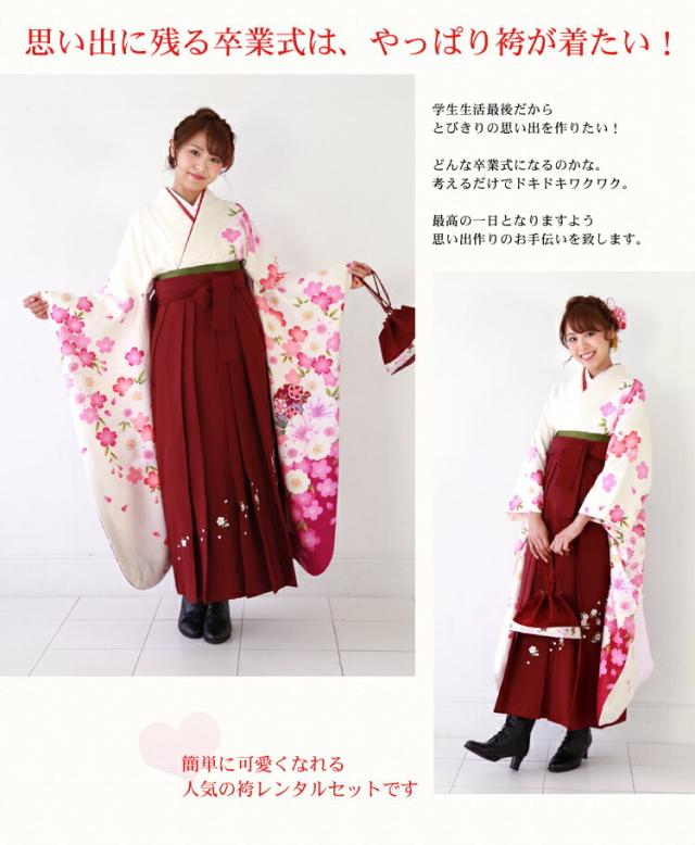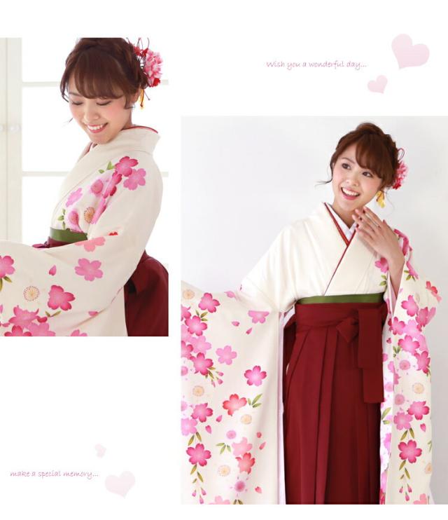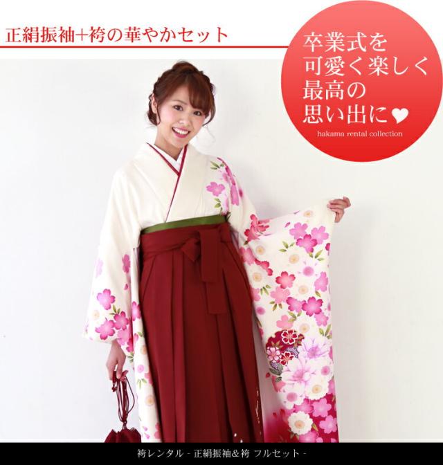 卒業式 袴 レンタル 女 袴セット 正絹 振袖 着物&袴 フルセットレンタル 安い 「白地にピンクぼかし 桜 雪輪 花」