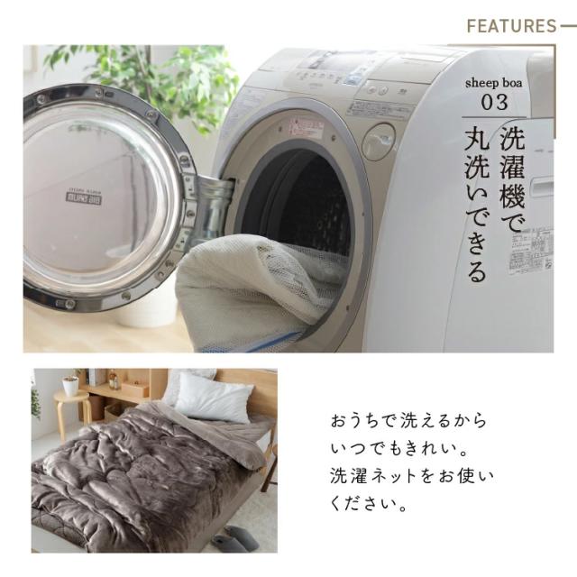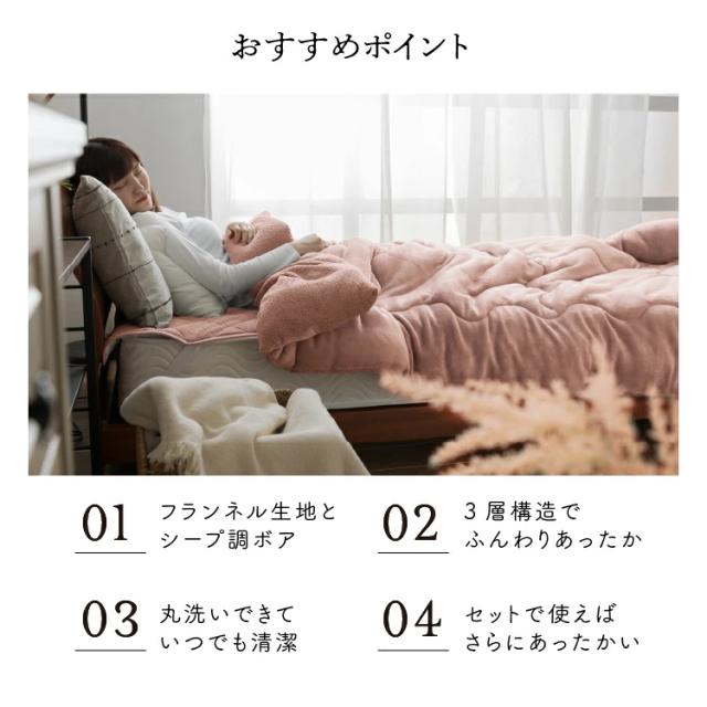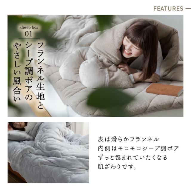 フランネルとシープ調ボアで800gの中綿を挟んだ3層構造です。