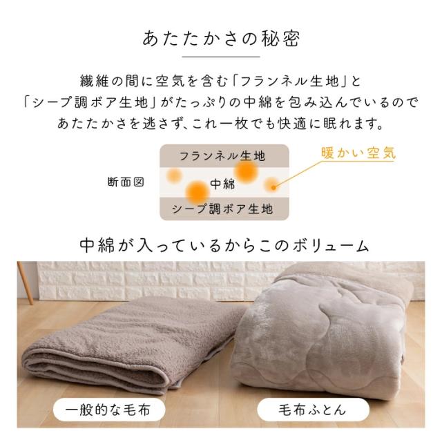 毛布1枚でも暖かい!ボリュームたっぷりの綿入り毛布。