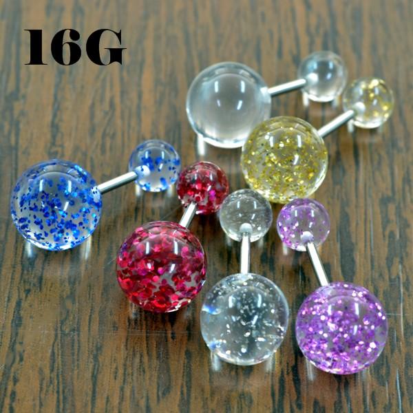 ボディピアス 16G 1.2mm アクリル クリア ラメグリッター ストレートバーベル 軟骨ピアス
