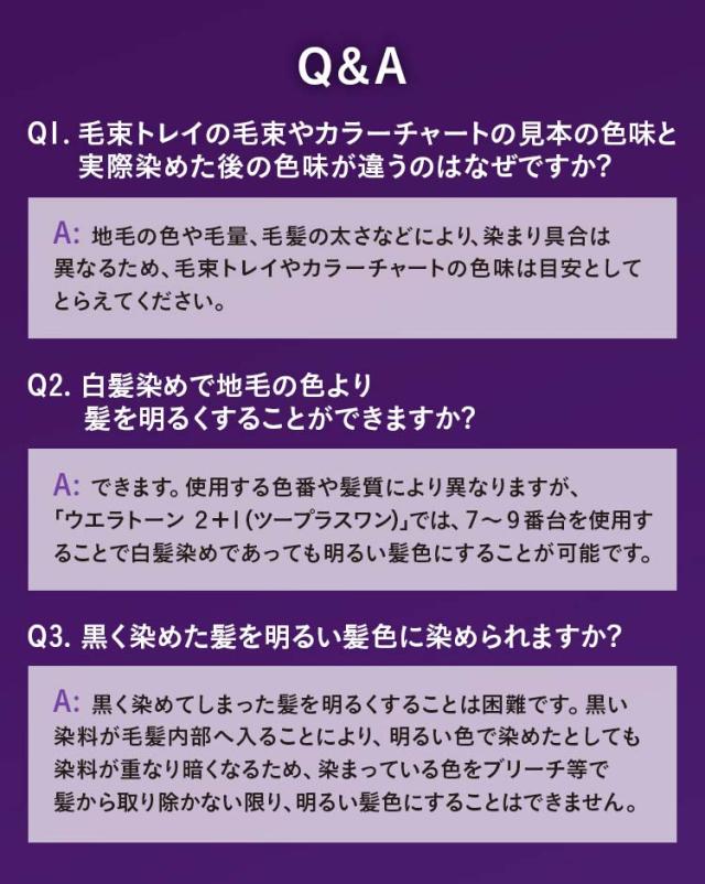 ウエラトーン ツープラスワンは、日本人の髪色に適した7つのシェードパターンを選び、その中で髪色のトーン(明るさ)を選べるようにデザインされています。
