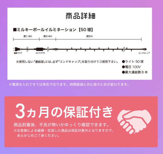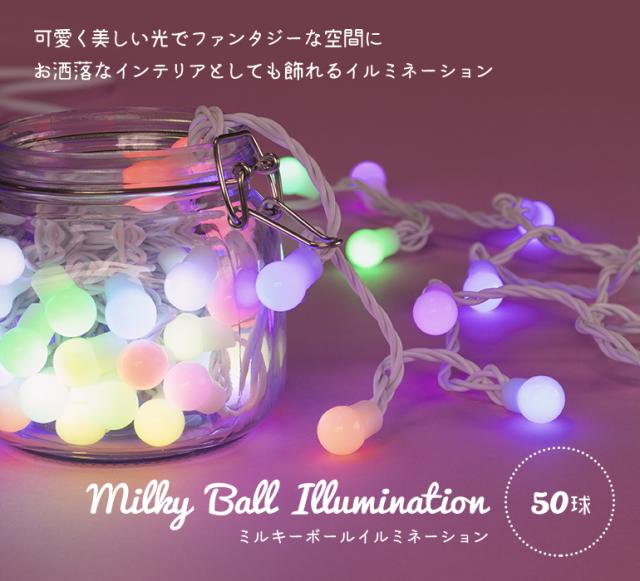 クリスマス イルミネーション 屋外 ボール カラー ミルキー ストリングライト LED 50球 5m 防水 防雨 イルミネーション ライト クリスマスツリー イルミネーション