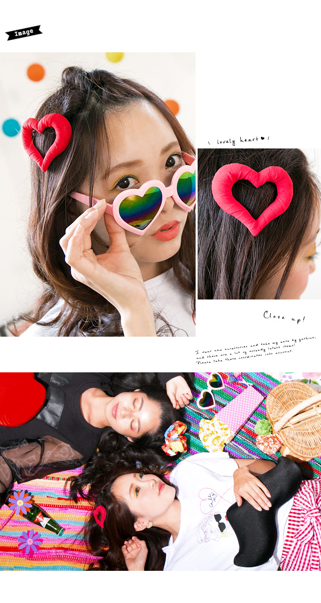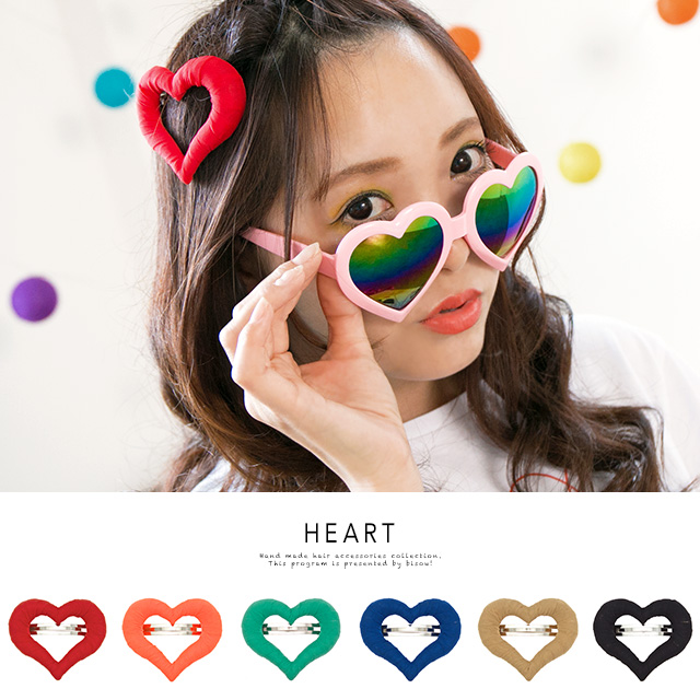 【ビビットカラーのハート型バレッタ】ハート/原色/ポップ/お揃い/カジュアル/ヘアアレンジ/髪留め/髪飾り/ヘアアクセサリー