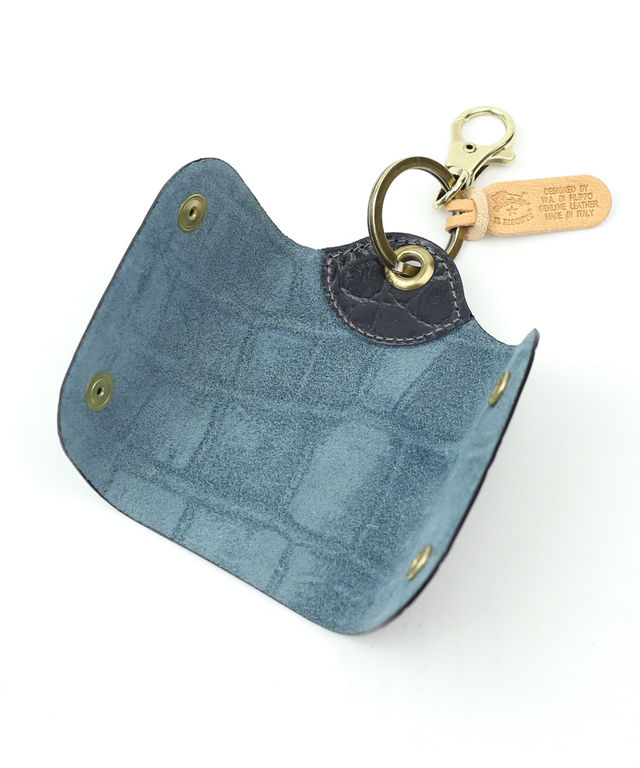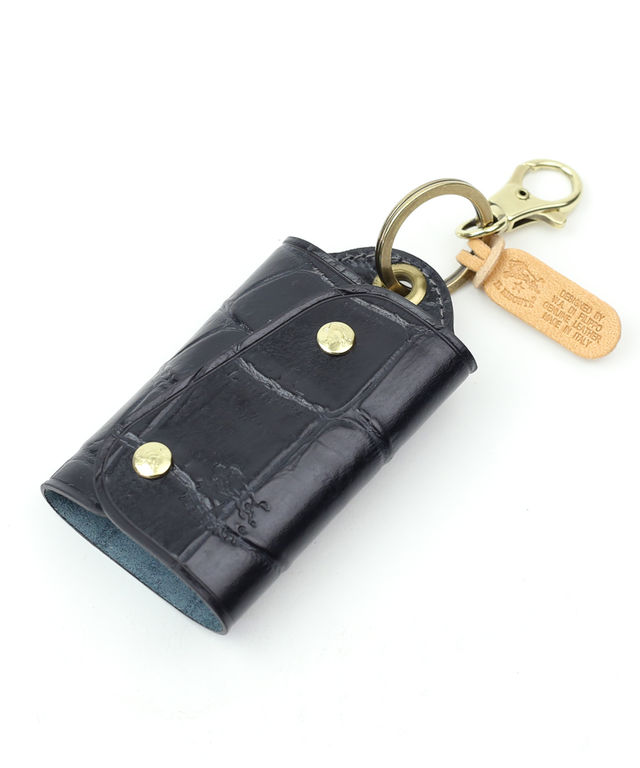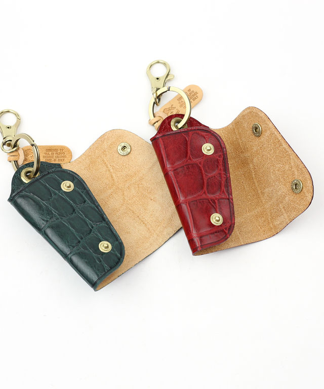 クロコ風の型押しレザーのリュクスなデザインで、小物ながら存在感は抜群!