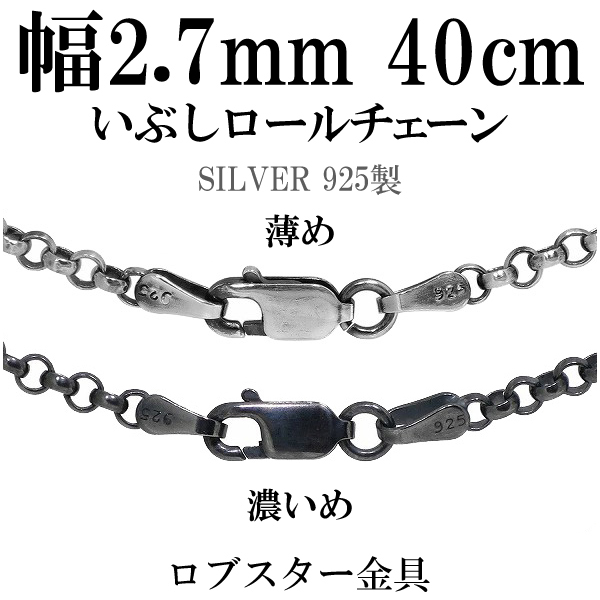 いぶしロールシルバーチェーン 幅約2.7mm 40cm/シルバー925 ネックレス チェーンのみ 燻し ブラック