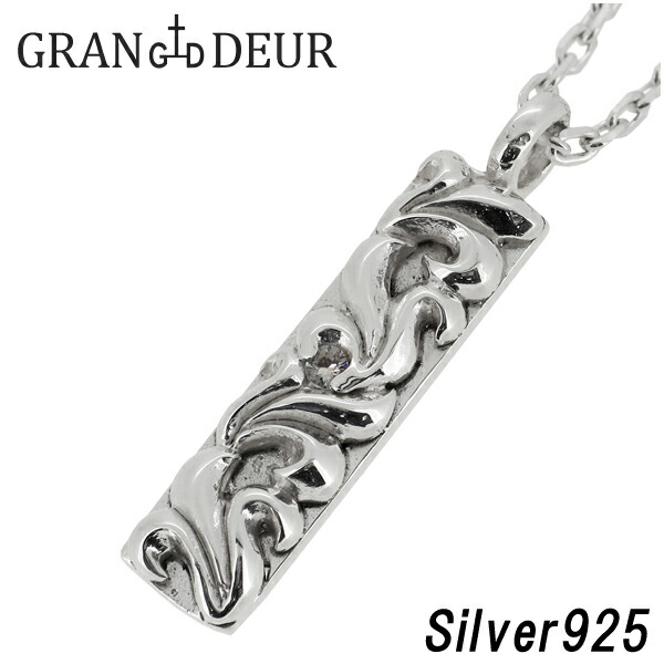 GRAN DEUR ホワイト サファイア 唐草 シルバー ネックレス シルバーアクセサリー メンズ ペンダント 男性用 シルバー925 天然石 アラベスク プレート