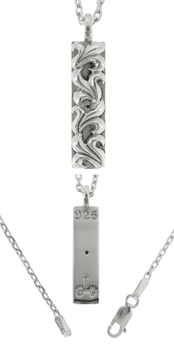 【GRAN DEUR】ホワイトサファイア 唐草 プレート シルバー ネックレス(チェーン付きペンダントトップ)