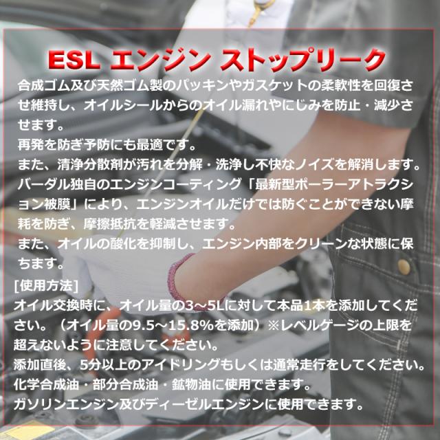 エンジンオイル 添加剤 バーダル エンジンストップリーク ESL 473ml BARDAHL オイル漏れ止め オイル漏れ予防 オイル上がり オイル食い オイル消費