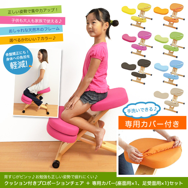 専用カバー付き。自発心を育む補助クッション付きプロポーションチェアキッズ。