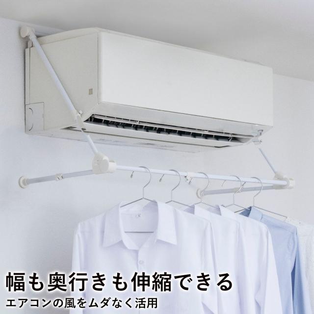 エアコンハンガー 室内物干し 速乾ハンガー 幅伸縮 奥行伸縮 ( エアコン ハンガー 室内物干し 部屋干し 部屋 干し グッズ 折りたたみ 天井 折り畳み 室内干し コンパクト 物干しハンガー )