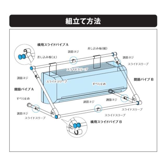 | 備考 | ※本製品は壁掛けタイプのエアコンに取付ける商品です。以下の場所には取付けで来ませんのご注意下さい ・奥まっている場所にエアコンが設置されている ・エアコンのすぐ下が窓、または壁が奥まっている場所に設置されている ・取付け面の横壁、天井がエアコンから5cm以上のすき間がない場合 ・壁とエアコン背面に2mm以上のすき間がない場合 |