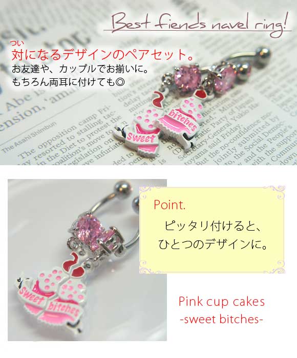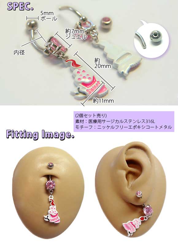 本日P2倍 14G ピアス ボディピアス 2個 セット ペアへそピアス ピンクカップケーキ 金属アレルギー対応 316L 高品質 ステンレス