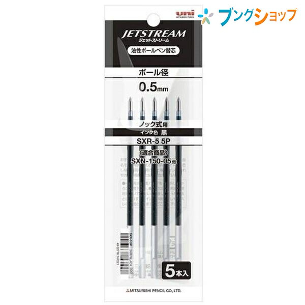 三菱鉛筆 ボールペン替芯 ジェットストリーム専用替芯0.5クロ 5本パック SXR55P.24 JETSTREAM 替え芯 カエシン 多色多機能用替芯 なめらかな書き味 滑るような書き味 くっきりと濃い描線 速乾性 油性顔料