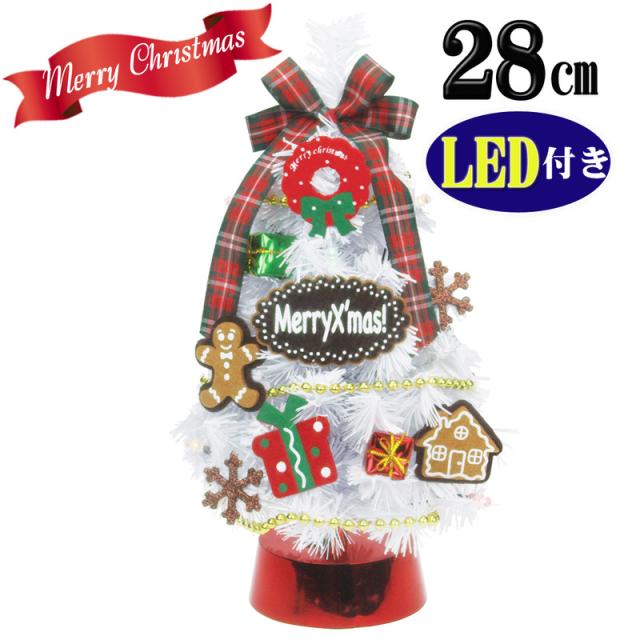 クリスマスツリー LEDデコレーションツリー スイーツクリスマス ホワイト 28cm 東京ローソク製造 クリスマスツリー サイズ別 ~30cm LEDライト付き 電池式 オーナメント付き