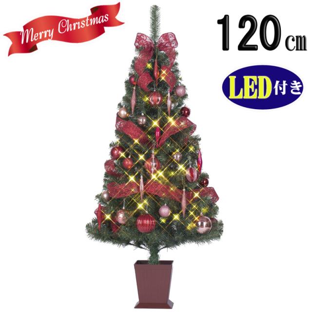 クリスマスツリー 120cmセットツリー モーブ 四角ポット付 LEDライト付き 東京ローソク製造 クリスマスツリー サイズ別 91~120cm オーナメント付き 四角ポット付き