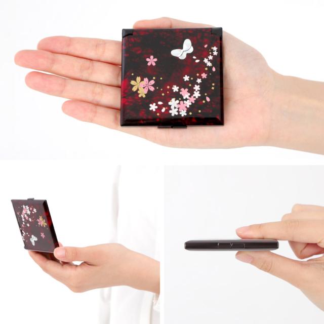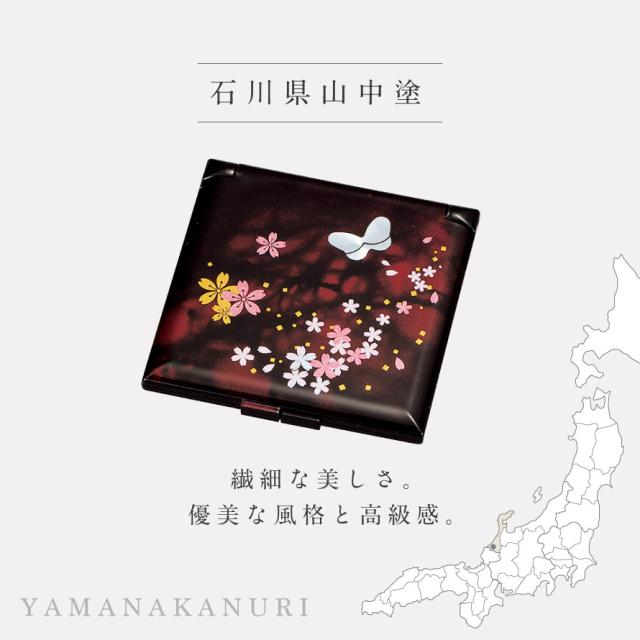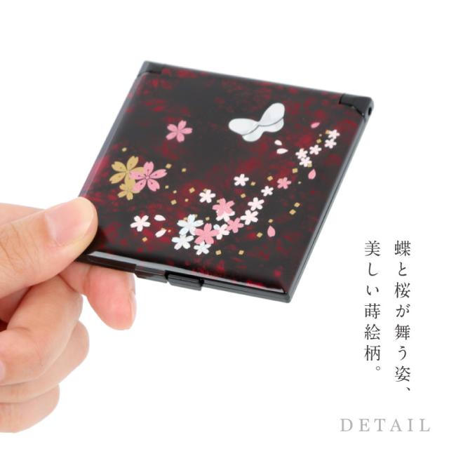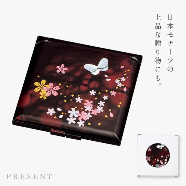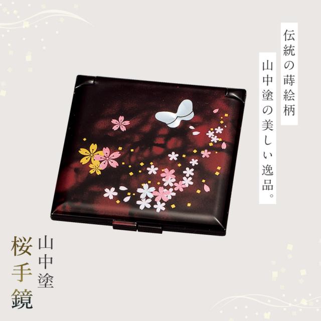 手鏡 折りたたみ コンパクトミラー 和柄 和風 高級 山中塗 蒔絵 漆芸 外国人へのお土産 日本のお土産 日本 海外 お土産 桜さくら 角コンパクトミラー プレゼント ギフト 誕生日 敬老の日 母の日 お祝い 記念品 和雑貨