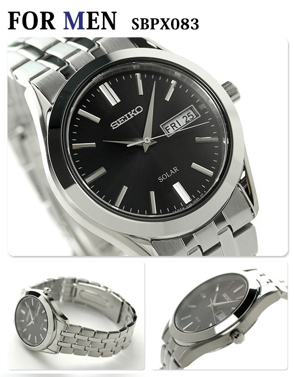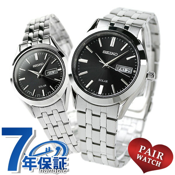 正規品 7年保証キャンペーン 送料無料 ペアウォッチ セイコー スピリット ソーラー 腕時計 pair-spirit2 テーマは「スタンダードドレス」。飽きのこないシンプルなデザインのソーラーペアウォッチです。広々と見やすいダイヤル、サファイアガラス採用の実用性に優れたソーラーのペアモデルが、お求めやすい価格で登場。黒い文字盤にバーインデックスと落ち着いた雰囲気に、しなやかなバンドがドレッシーさを演出します。安心のメイド・イン・ジャパンです。 発売日:15年9月発売 メンズ品番:SBPX083 レディース品番:STPX031