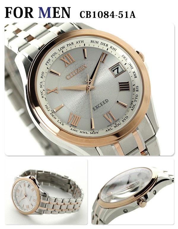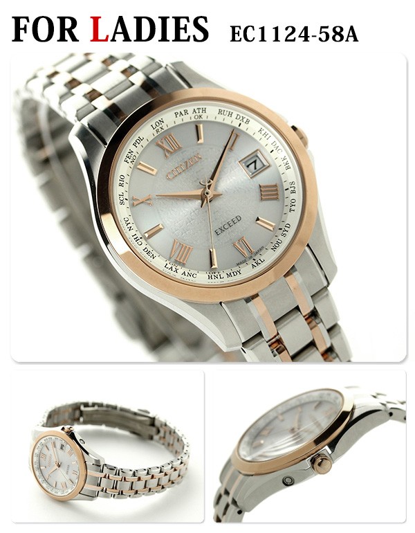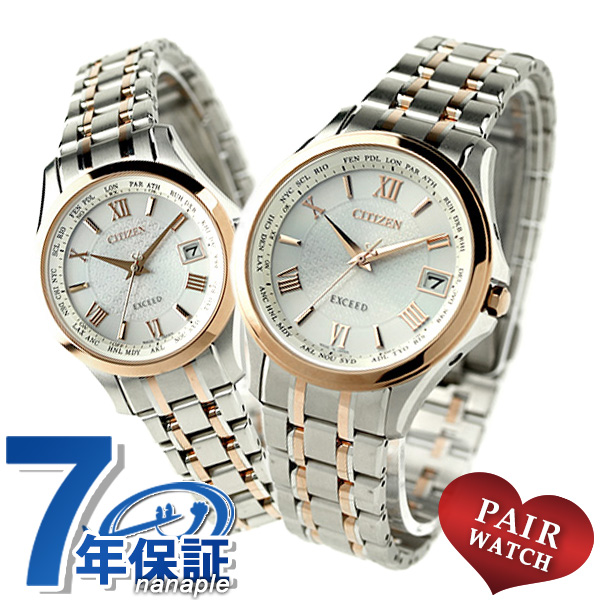 正規品 7年保証キャンペーン 送料無料 ペアウォッチ シチズン エクシード 電波ソーラー 腕時計 pair-exceed2 エクシードらしい、薄型でエレガントなグローバル電波対応のペアウォッチです。丸みをおびたフォルムにすることで、エレガントでありながら親しみを感じさせるデザインに仕上げています。綿密に設計された、薄くしなやかなチタニウムバンドを採用。文字盤は、ローマ数字とバーインデックスを組み合わせることで、視認性を確保しながらエレガントなデザインを実現しています。ケース、バンドにはデュラテクト加工を施すことで、時計本来の輝きや仕上げの美しさを保護します。サファイアガラスにクラリティ・コーティングを施すことによって、高い視認性を確保。耐久性と防汚性も優れています。金属アレルギーに対応した耐ニッケルアレルギー商品です。発売日:15年10月発売 メンズ品番:CB1084-51A レディース品番:EC1124-58A