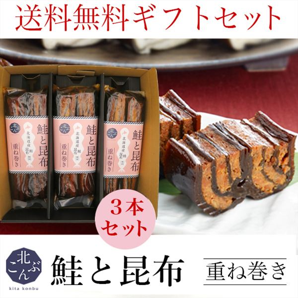 お歳暮 ギフト 惣菜 送料無料 北こんぶ 鮭と昆布 重ね巻き 3本セット / 御歳暮 内祝い お返し プレゼント 食べ物 返礼 海鮮 海の幸 手軽 こぶまき 北海道産 人気 昆布巻き 惣菜