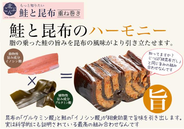 | 北海道産の昆布を一枚一枚ミルフィーユ状に重ねた、北海道で人気の逸品が北こんぶシリーズで登場。 昆布のグルタミン酸と鮭のイノシン酸が相乗効果で、うまみ成分を劇的に高めています。 風味豊かな昆布と、やわらかな鮭の食感が特徴です。 お祝いの席やごはんのお供に是非! |