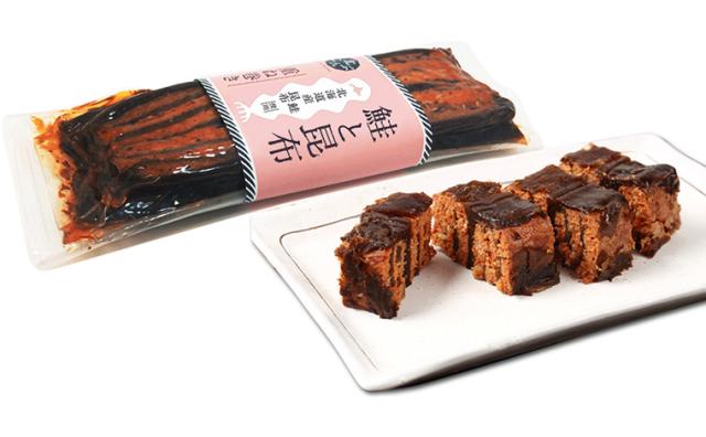 | 鮭と昆布重ね巻き/鮭中骨(北海道産)、昆布(北海道道東産)、砂糖、水あめ、醤油、醸造調味料、食塩(原材料の一部に小麦、大豆、さけを含む) |