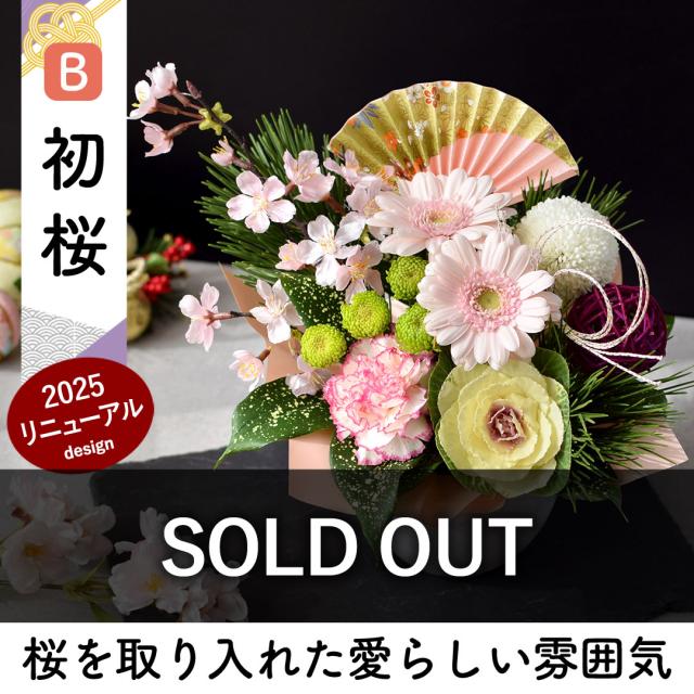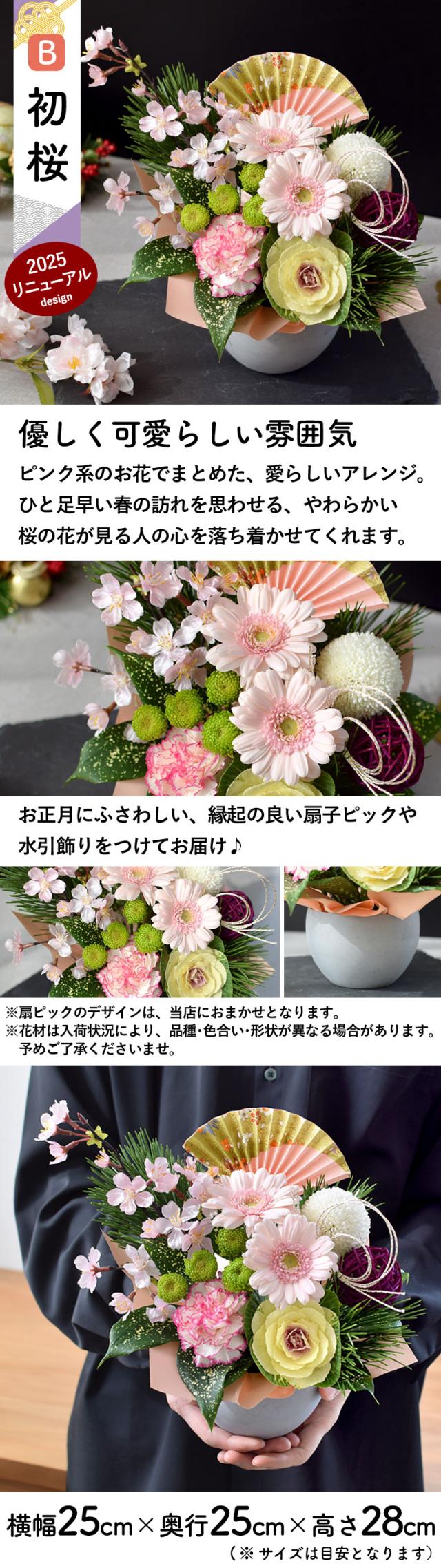 「初桜」:桜/ガーベラ/マム/スプレーマム/カーネーション/ゴット/葉牡丹/松/