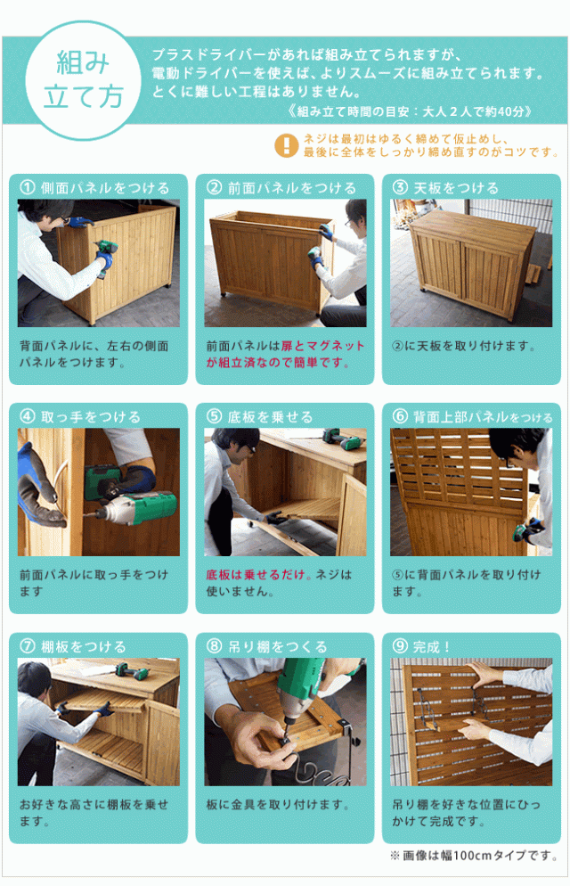 木製物置 作業台付き 収納庫 幅80cm 吊り棚パネル付き 倉庫 屋外 おしゃれ 園芸用品