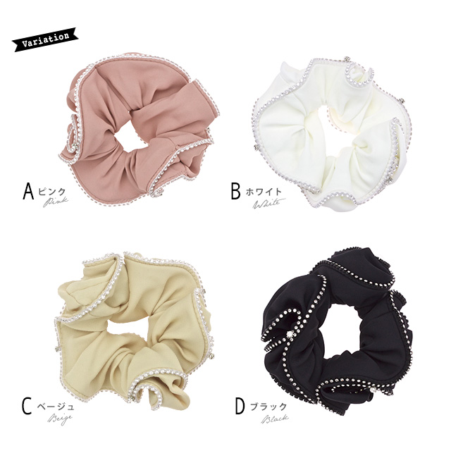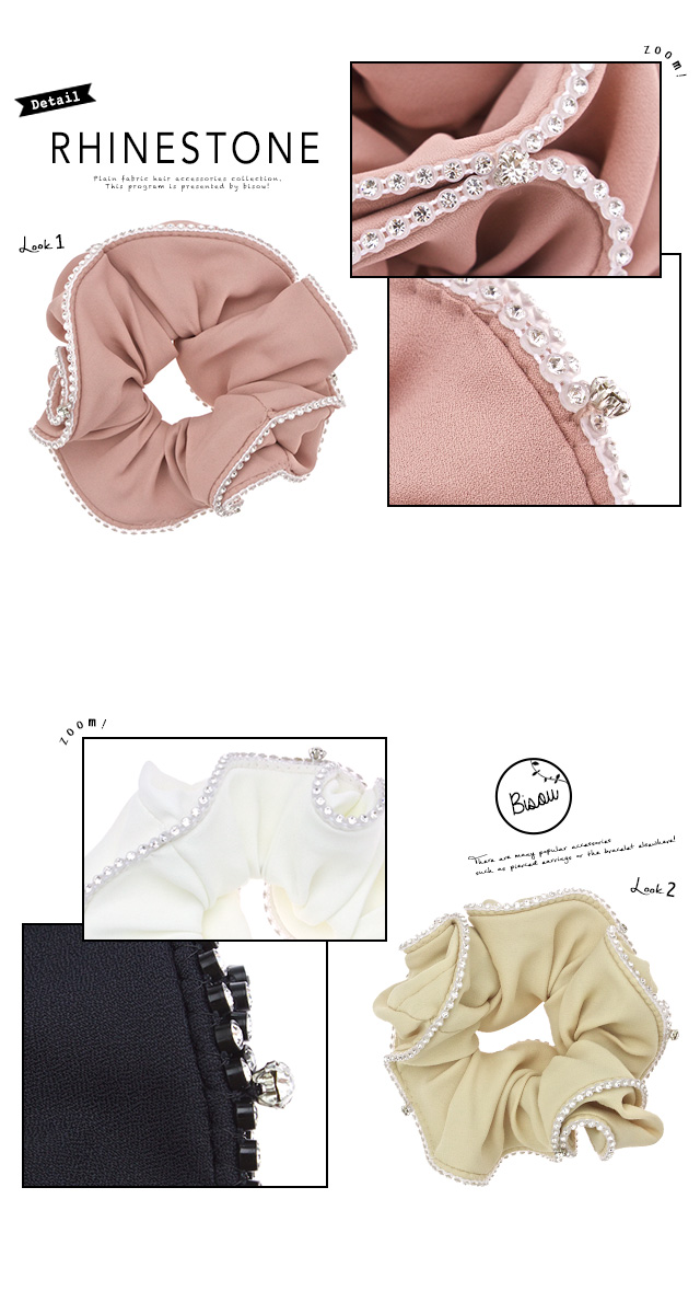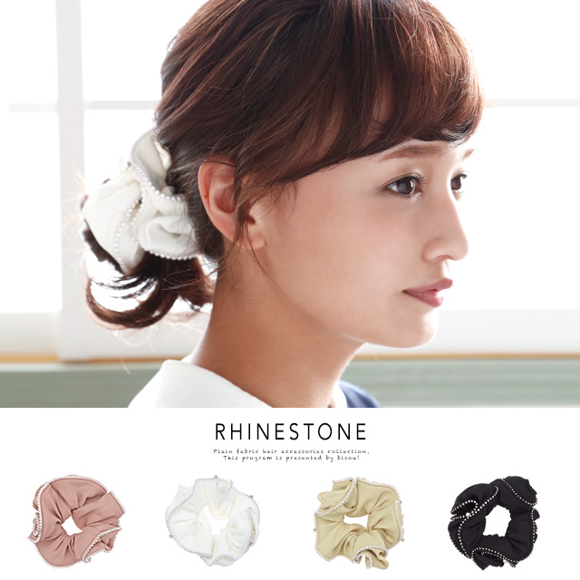 【ラインストーン付きのシンプルなシュシュ】無地/キラキラ/オフィス/シンプル/スクランチー/髪留め/髪飾り/ヘアアクセサリー