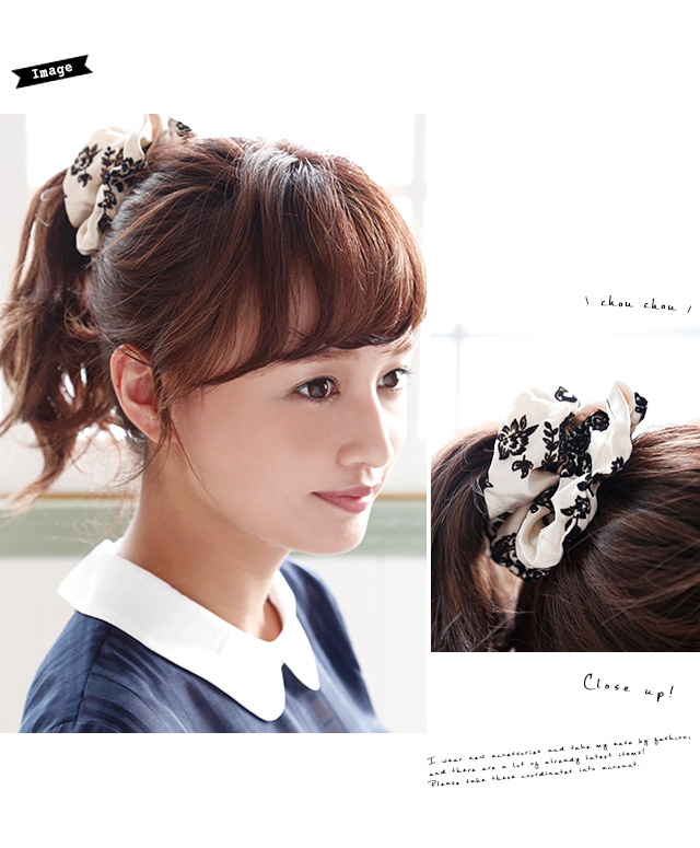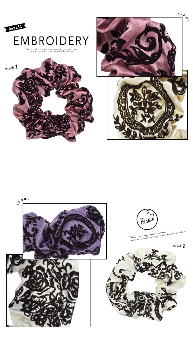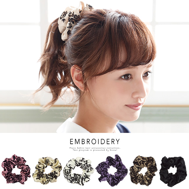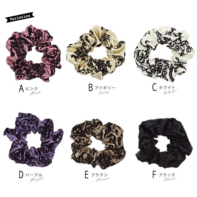 【エレガントなダマスク柄サテンシュシュ】無地/オフィス/シンプル/スクランチー/ヘアアレンジ/髪留め/髪飾り/ヘアアクセサリー