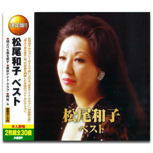 <仕様>2CD<収録曲>ディスク 11. 誰よりも君を愛す ( 和田弘とマヒナスターズ / モノラル )2. 再会 ( モノラル )3. 東京ナイトクラブ ( フランク永井 / モノラル )4. 忘れないわ5. 国道18号線 ( フランク永井 )6. 熱海ブルース7. ミサよタンゴを踊ろうよ ( モノラル )8. 女の慕情9. 哀愁の一夜10. 銀座しぐれ11. 黒いドレス12. 悶え ( モノラル )13. 雨の東京14. 別離 ( わかれ / モノラル )15. お座敷小唄 ( 和田弘とマヒナスターズ )ディスク 21. グッド・ナイト ( 和田弘とマヒナスターズ / モノラル )2. 夜がわるい ( モノラル )3. 銀座ブルース ( 和田弘とマヒナスターズ )4. 君待てども ( モノラル )5. 再会の朝6. 小さな酒場 ( モノラル )7. 11時 ( イレブン ) 過ぎから ( フランク永井 )8. AF機 ( エールフランス )が呼んでいる ( 藤田功 )9. 嫌い嫌い嫌い ( モノラル )10. ベッドで煙草を吸わないで11. 煙が目にしみる ( SMOKE GETS IN YOUR EYES )12. ケ・セラ・セラ ( QUE SERA SERA )13. イパネマの娘 ( GAROTA DE IP ANEMA )14. シャレード ( CHARADE )15. 愛の讃歌松尾和子がセクシーボイスで歌い上げる「東京ナイト・クラブ」「お座敷小唄」「誰よりも君を愛す」等、代表曲を網羅...