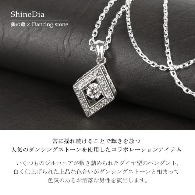 当店限定 ダンシングストーン メンズ ネックレス (チェーン付き) ペンダント シルバー 925 Cross Emotion Dancing stone ブランド ひし形 ダイヤ型