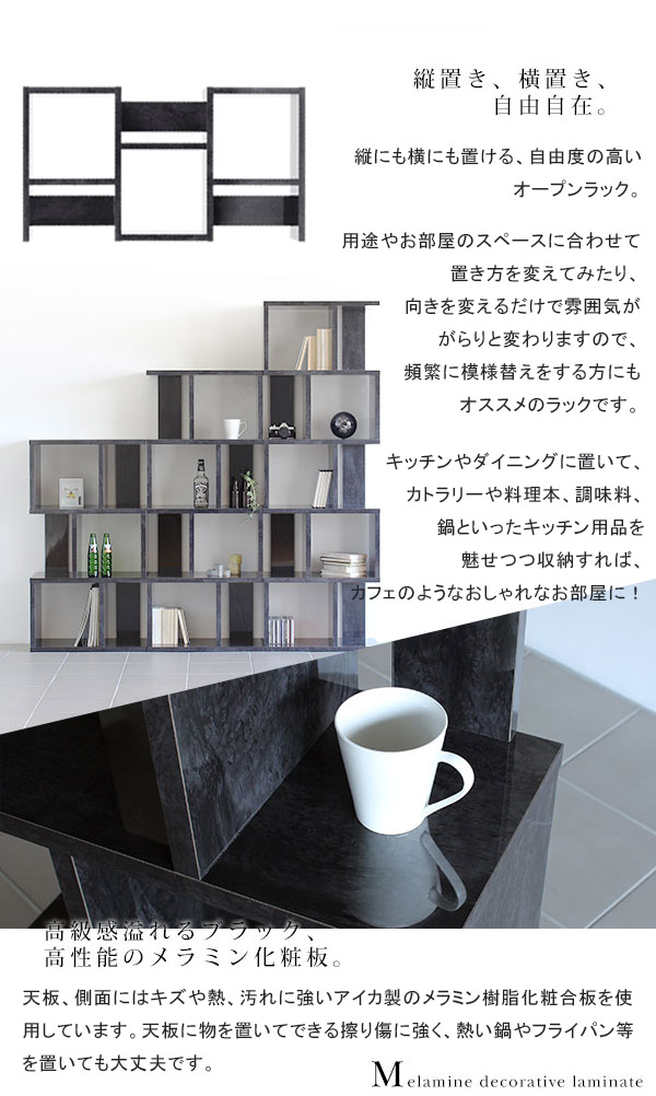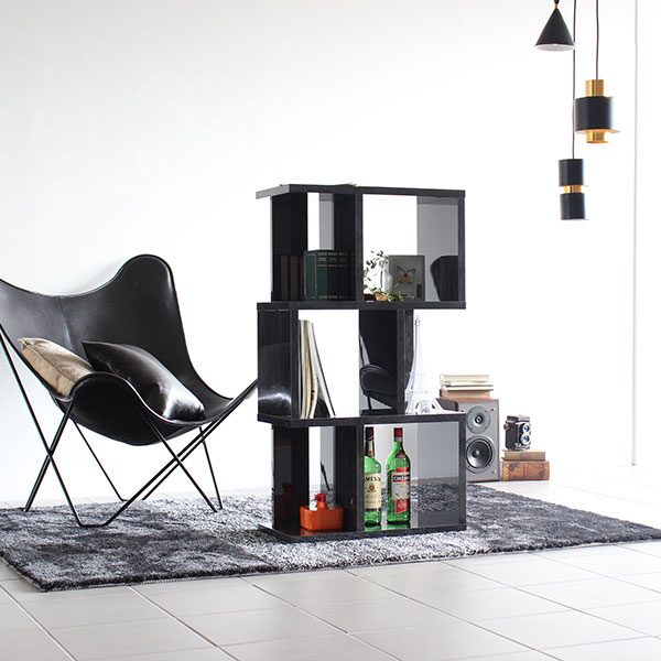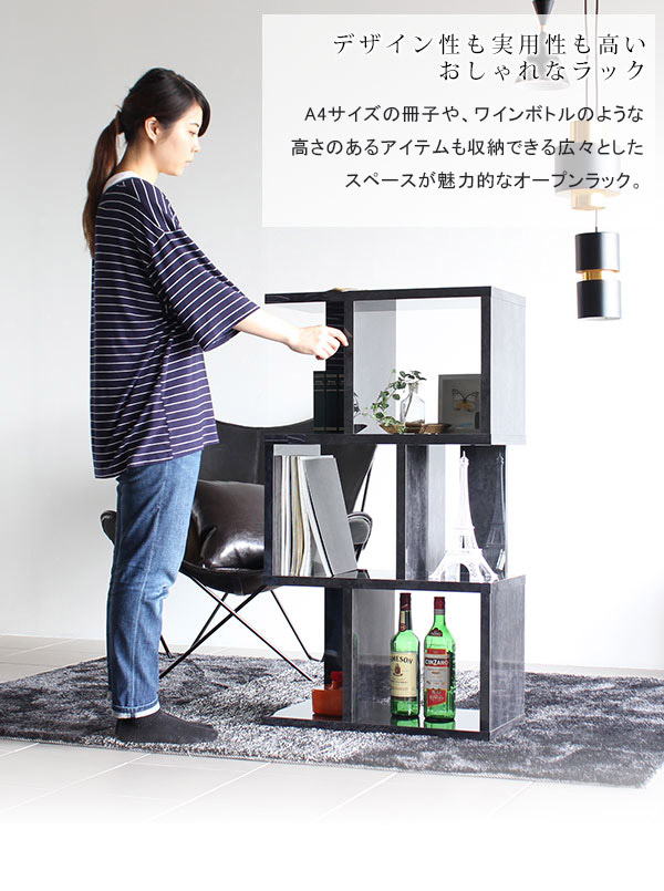 オープンシェルフ ディスプレイラック おしゃれ 3段 S字 オープンラック 飾り棚 収納 鏡面 ブラック 黒 BP 3段ラック ☆