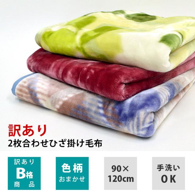 膝掛け ブランケット ひざ掛け 毛布 ※訳あり ※色柄おまかせ ※無地含む 2枚合わせ ゆったりサイズ 90×120cm ふっくら ボリューム