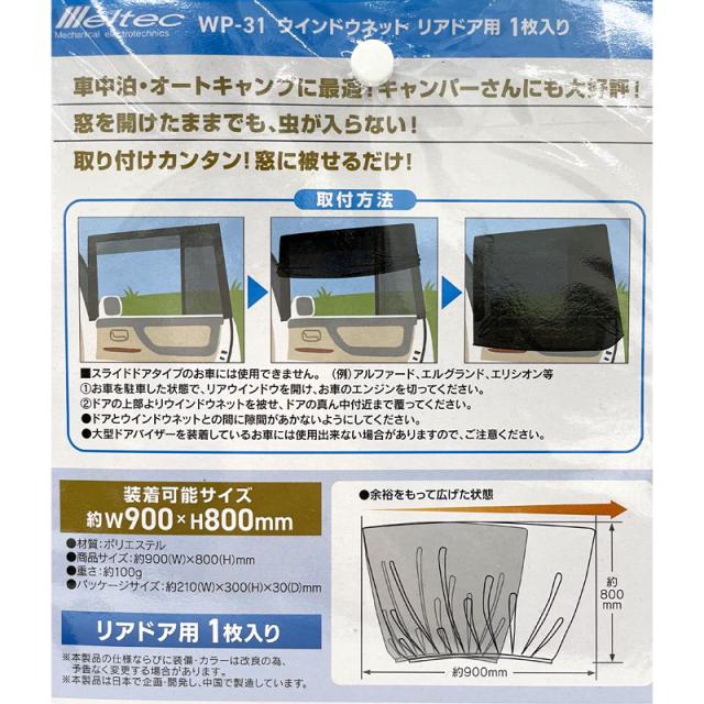 大自工業/Meltec:ウィンドウネット ウインドーネット リアドア用(後部座席用) 網戸 虫よけ 1枚入り WP-31